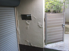 特に車庫の外壁は水が廻りモルタルが劣化し凸凹の状態となってます。