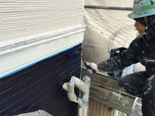 1Fと2Fの色分けをしているため中間の胴差に養生を貼り塗装しています。