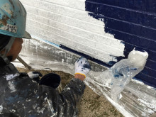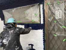 1Fの水性セラミシリコンを刷毛・ローラーで手塗りしています。