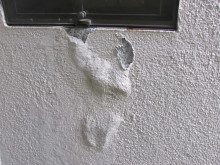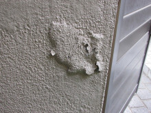 外壁のあちこちに大きな膨れがあります。しかも内部のモルタルはサクサクになり完全にモルタルが中性化しています。