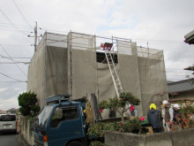 外壁塗装も終わり屋根のカバー工法をしています。