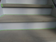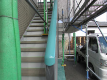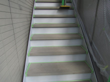 階段もケレン・洗浄・エポキシ系の錆び止めへと進み次の工程は中塗り↓