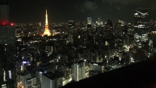 高層ビルの上から撮影した東京の夜景。東京タワー、六本木ヒルズ、東京ミッドタウンが写ってます。