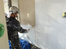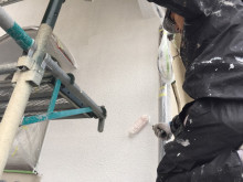 下塗りが乾燥した部位には中塗りを入れてます。ローラーで塗装ですので飛散も無く安心して作業が出来ます。