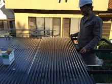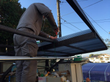 この波板取り付けは簡単にみえて意外と奥が深いんです。噛み合わせが悪い場合は強風で捲れたり、雨漏りしたりと大変です。