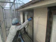 外壁も高圧洗浄でチョーキング塗膜を除去します。