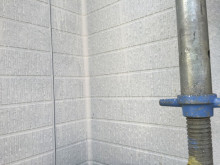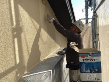 外壁は下地にSDサーフエポを下塗り。この下地材はエポキシ系のフィラーで安定性があり下地に強固に密着し上塗りを安定させます。