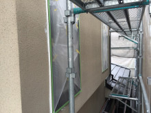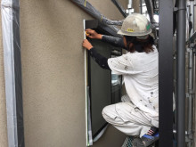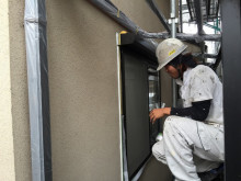 今日の作業は窓枠のシーリング工事と養生作業。