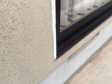 窓際にテープを貼り変性シリコンを打設しています。