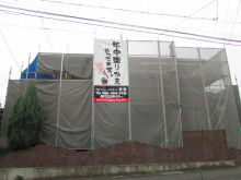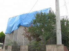近隣に配慮し汚水が飛散しないように養生シートを更に追加して飛散防止に努めます↓