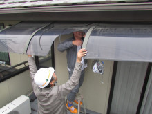 軒天の塗装が出来ないのでアクリル板の取り外しをしています。