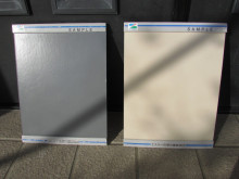 1Fが左側のグレー色 2Fが隣のアイボリー色。