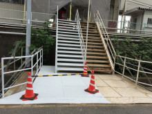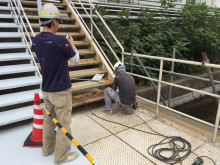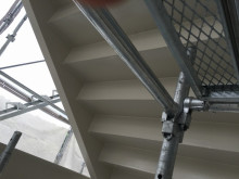 今日の秀ちゃん奮闘記は近月初旬から着工しています倉敷市船穂S企業様の屋外階段塗装。