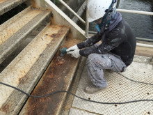サンダーケレン状況を職方が撮影しています。工事完了と同時に施工写真を企業様に提出します。