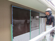 刷毛で塗った後にローラーで軽く抑えて刷毛目を消します。スプレー塗装する場合もありますが雨戸の形状が複雑ではない場合ローラーで仕上げる事もあります。
