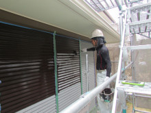 今日の塗装内容は外壁塗装と大屋根の塗装はほぼ完成していますので雨戸塗装に取り掛かっています。