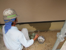 基礎の塗装をしていると土壌の水分をモルタルあるいはコンクリートが吸い上げ、塗装が剥離したエフロレッセンス(塩を吹いた状態)になっているのをよく見かけます。