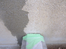 ここで解る事は、土壌からの水分はコンクリートやモルタルは吸い上げても外に出ようとしないので塗膜をしっかり保護する事が出来るんです(吸い上げた水分は水蒸気として放出します)