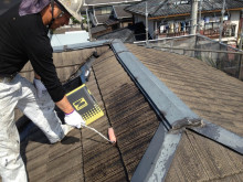 モニエル瓦は塗膜が脆弱であるためエポキシ系のプライマーは必ず2回塗布するようにしています。