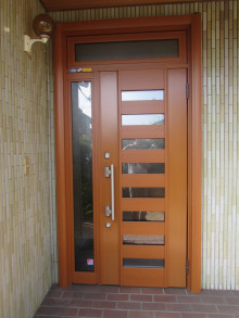 古くなった玄関ドアの再塗装も改修方法の一つですが、このようにアルミで多機能なドアに変身するのも提案の一つだと思います。