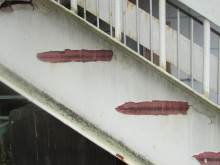 昨日もお伝えしましたが階段の塗膜劣化はかなり進行しておりボロボロの状態です。