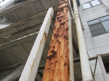 錆びた鉄骨がサンダーケレンによりどれくらい綺麗に下地処理出来るかが鉄骨の寿命を延ばすポイントとなります。