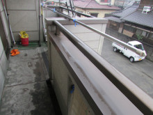 ぐらぐらだったアルミ手摺は撤去し、新たにカバー工法で笠木を取り付けました。
