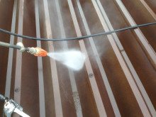 錆がひどいので高圧洗浄はトルネード(ガンの先から水がスパイラル状になる)で洗浄しました。トルネードを使用すると通常の高圧洗浄の水圧と同じでも回転しながら出るので衝撃が大きくなるのですごい破壊力です。