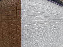 この材料を塗布する事でサイディング板の軽微なクラックは軽減できると同時に、上塗り塗料の吸い込みが無くなるので上塗り材がメチャ綺麗に仕上ります。