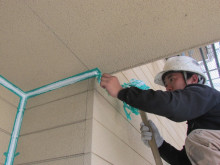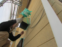 サッシュ枠とサイディングにテープを貼り専用プライマーを塗布した後にシーリング材を充填します。