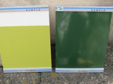 右のグリーン色が屋根、左の薄いグリーン色が外壁。