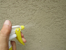 現状での性能を調べるために霧吹きで水をかけてみると見事に親水しています。※塗装膜は撥水すると汚れやすいんです