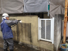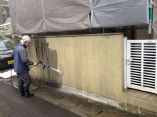 何回かブログでお伝えした雨の日工事の高圧洗浄。