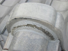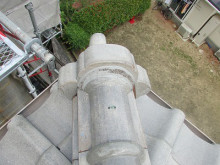 離れの屋根鬼瓦の取り付け部分もモルタルが劣化し鬼瓦が落ちかけていたのでシーリングで止めさせて頂きました。