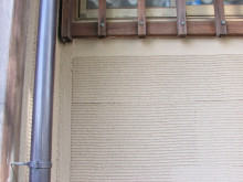 このベルアートクシ引き仕上げは、下地処理をコテで仕上げ、中塗りは吹付け。