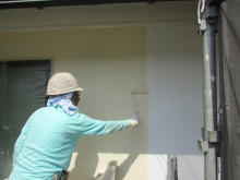先日高圧洗浄が完了し今日は2F外壁塗装。