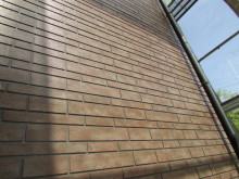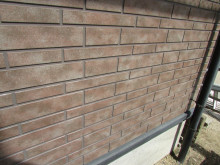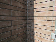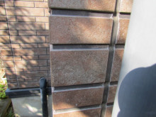 玄関先はグラデーション風なサイディングでチョーキング(手で触ると白い粉が出る状態)目地が劣化してました。