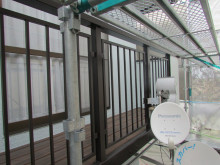 塗装工事もほぼ終盤を向かえ、今日は足場解体前の竣工検査とボロボロだった軒天喚起の交換をしています。