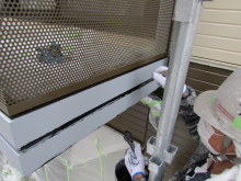 作業も終盤を迎え最終工程に突入。ベランダのパンチングメタルも綺麗に仕上がり次工程はアルミ胴差の仕上げ。