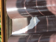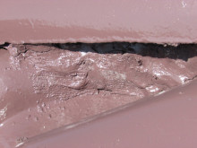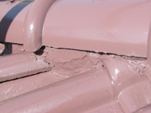 これじゃ雨漏りするのでカチオン系フィラー(改修用樹脂セメント)にて補修しました。