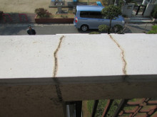 ベランダ笠木もモルタルです。この笠木も塗装ではなく板金笠木を付けたほうが安定します。