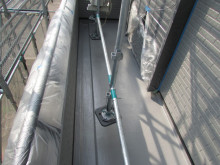 N様の塗装工事はほぼ終了し今日は最終工程のFRP防水の仕上げ工事。訪問した時には仕上ってました。なので仕上がり状態の確認