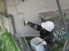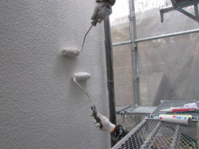 先日高圧洗浄が終わり本日の作業はシーラー処理と中塗り。単層弾性セラミクリーンでの仕上げです。