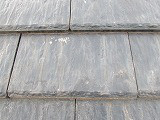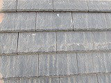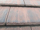この瓦の塗装はチョーキング(手で触ると白い粉が出る状態)がもっと進行した状態で指で押さえると下地の黒い部分が顔を現します。