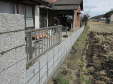 今日の作業内容はブロックが積み上がりましたからアルミフェンスの取り付け。