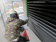 窓のルーバーはアルミですからミッチャクロンを入れクリンマイルドシリコンで上塗りします。