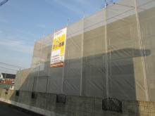 先日仮設工事が完了しました。今回の現場は吹付け作業ですから吹付けが飛んで行かないように養生シートを2重貼りにしました。