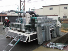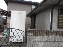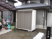家の横に物置があったので足場屋の職方に手伝ってもらい物置を移動。