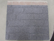この現場の仕様はフジワラ化学のモアダンテF工法。柄付きサイディングの塗り替えで単色になるのは味気ないので石彫吹付けを提案しました。