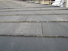 屋根に上がると洗浄後の傷んだカラーベストが